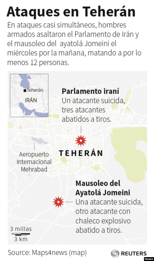 LONDRES (Reuters).- Hombres armados asaltaron el Parlamento de Irán el miércoles por la mañana y llevaron a cabo un ataque suicida en el mausoleo del ayatolá Jomeini, con lo que dejaron hasta siete muertos en un asalto doble en Teherán, informaron medios iraníes.