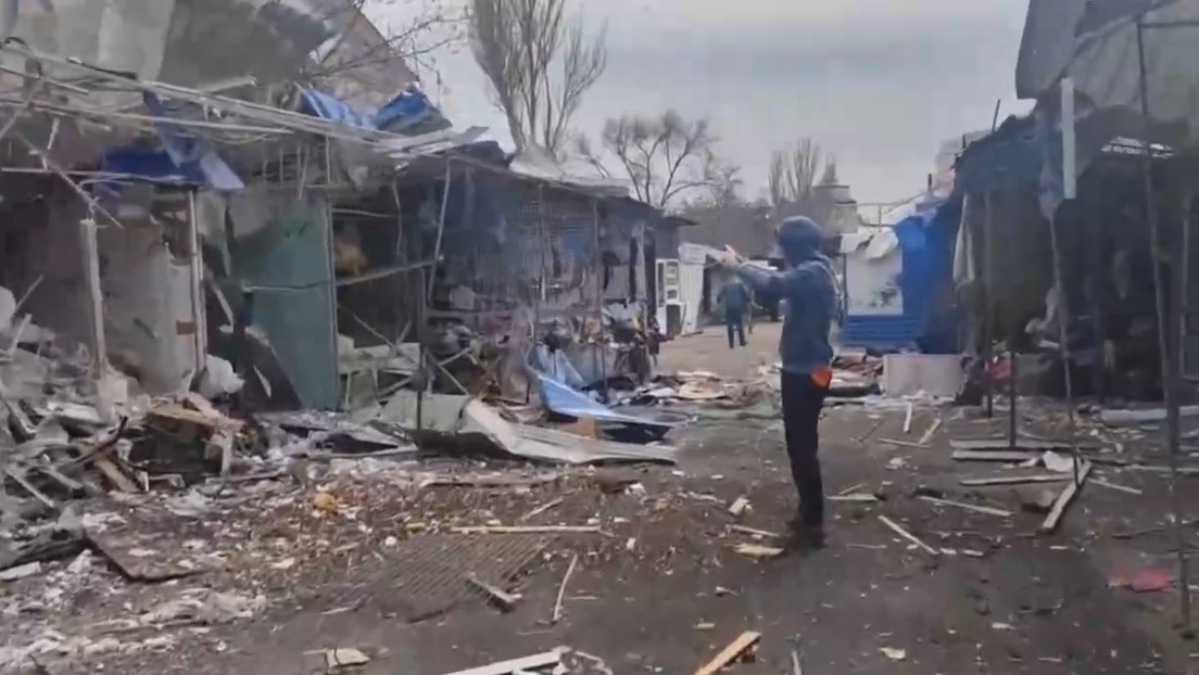Los proyectiles provocaron masivos daños materiales en zonas pobladas de la ciudad, como el territorio de un mercado, así como varios edificios y coches.
