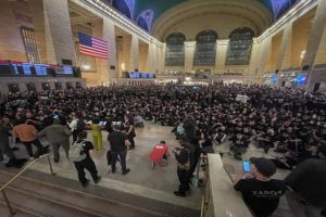 NUEVA YORK (AP) - Cientos de manifestantes abarrotaron el vestíbulo principal de la popular estación de trenes Grand Central Terminal de Nueva York durante la...